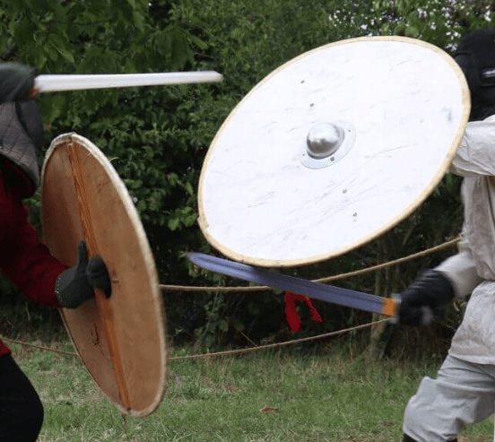 Le bouclier doit obligatoirement être rond et plat, sans umbo ainsi qu'avoir des sangles comme attache