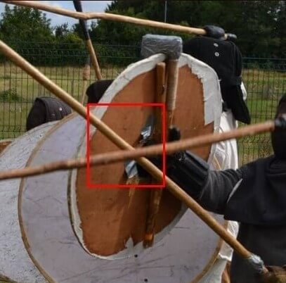 Le bouclier doit obligatoirement être ovale et incurvé, sans umbo ainsi qu'avoir des sangles comme attache